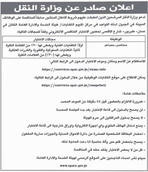 هذا، ودعت مؤسسات حكومية المرشحين الذين انطبقت عليهم شروط الاعلان المنشور سابقا للامتحان التنافسي.