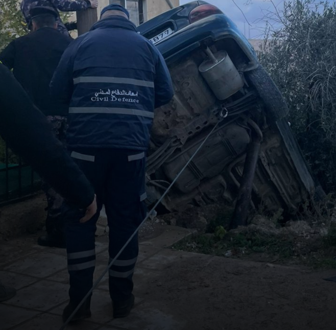 مركبة تقتحم باحة منزل إثر تدهورها في مرج الحمام بعمان