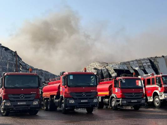 الدفاع المدني يخمد حريق مستودعين يحتويان على رولات ورق وأجهزة كهربائية وإطارات في محافظة العقبة