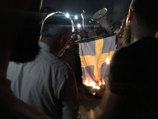 معتصمون يحرقون العلم السويدي أمام سفارة السويد في الأردن