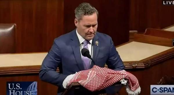 نائب أميركي يضع الشماغ الاردني أمامه ويهنئ بعيد الاستقلال - فيديو