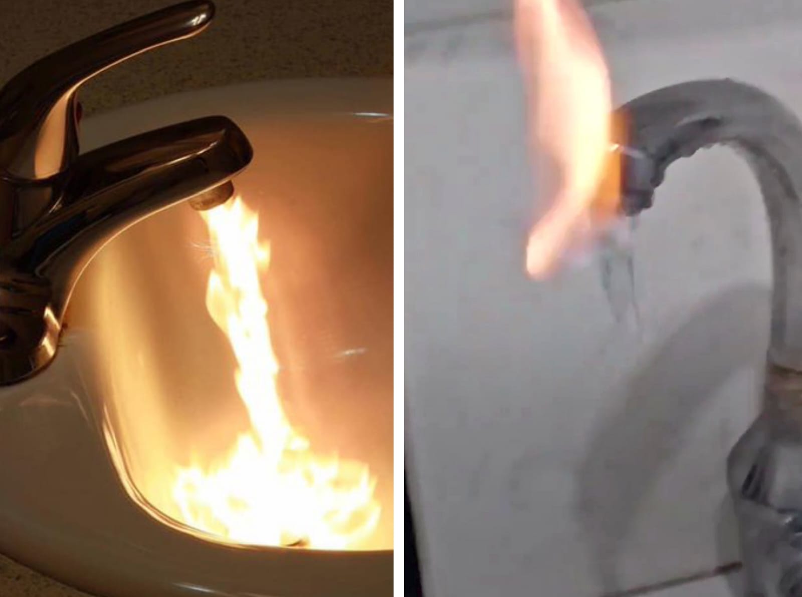 واقعة غريبة ألسنة لهب تخرج من حنفيات المياه.. فيديو