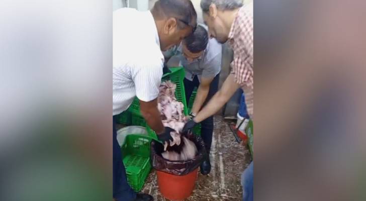 الزرقاء... إتلاف دجاج مجهول المصدر ضبط في مركبة غير مبردة وبه حشرات نافقة