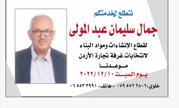 جمال عبدالمولى مرشحًا لقطاع الانشاءات في غرفة تجارة الأردن