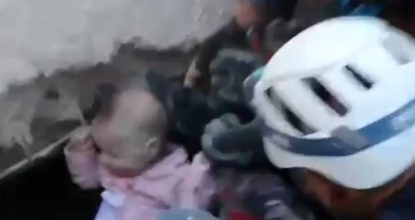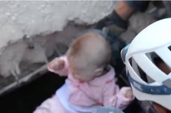 بالفيديو.. لحظة إنقاذ "رضيعة" من تحت أنقاض بناية اللويبدة