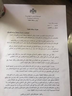 أخطر مذكرة من أهالي لواء الحسا حول ما قام به الذنيبات في مدرسة براعم الفوسفات .. وثيقة