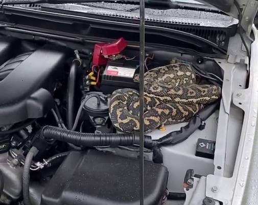 أفعى داخل مركبة والدفاع المدني يتعامل معها