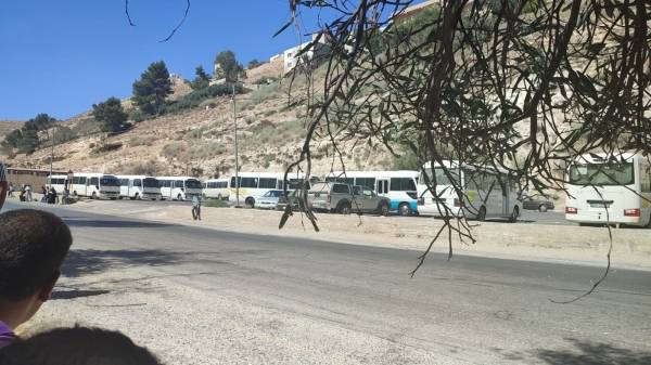 سائقو حافلات "الكوستر" في الكرك ينفذون اعتصامًا جراء ارتفاع المحروقات