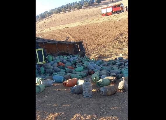 انقلاب شاحنه محملة باسطوانات غاز في المفرق .. صور