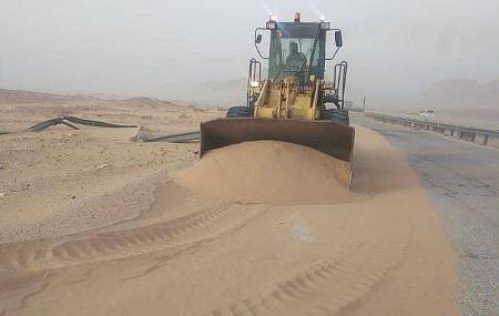 شاهد صور إغلاق الرمال للطريق الصحراوي
