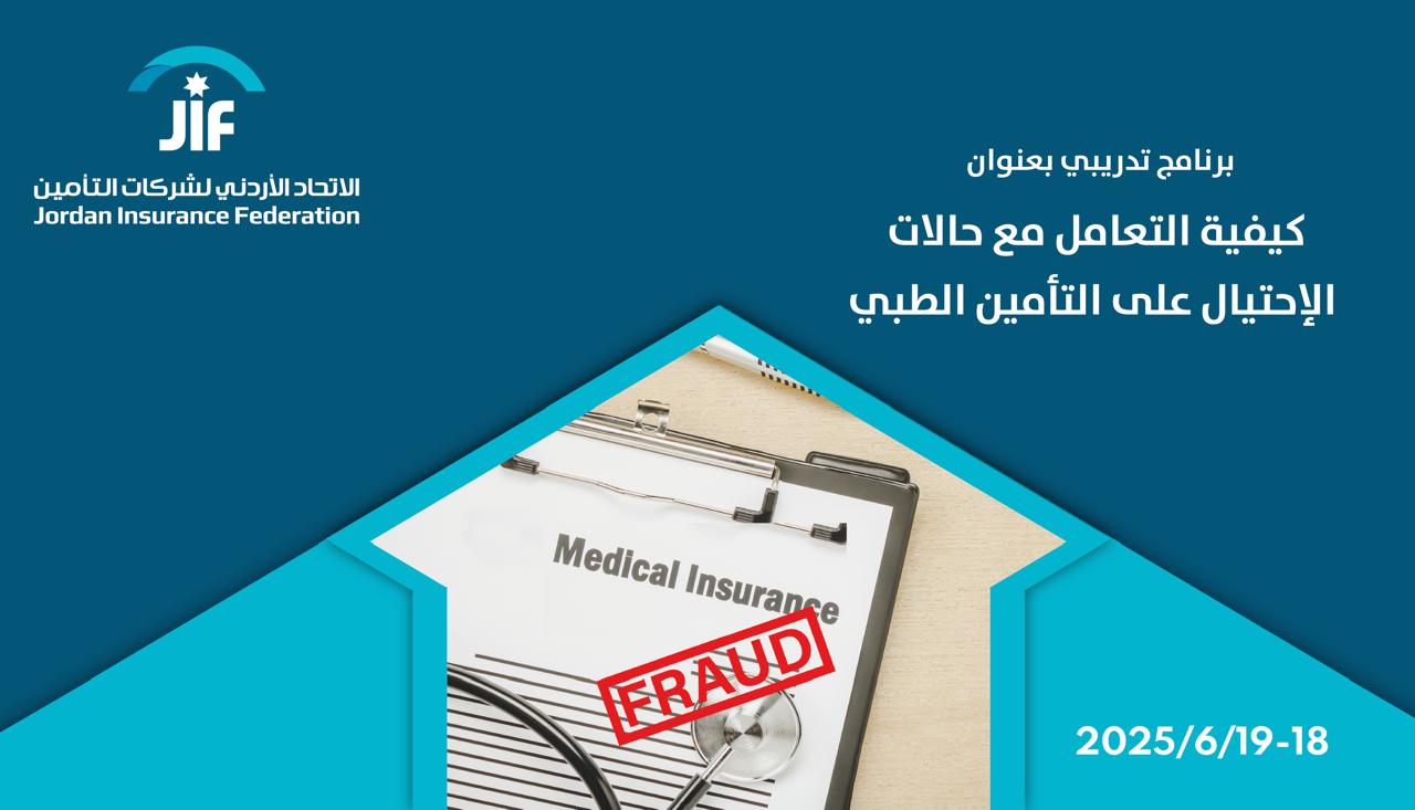 الاتحاد الاردني لشركات التأمين مستمر بعقد برامجه التدريبية والاعلان عن البرنامج التدريبي الخامس بعنوان " كيفية التعامل مع حالات الاحتيال على التأمين الطبي"
