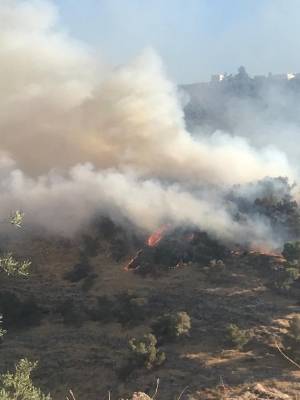 حريق يأتي على أكثر من 100دونم أعشاب يابسة وأشجار حرجية في بلدة حلاوة