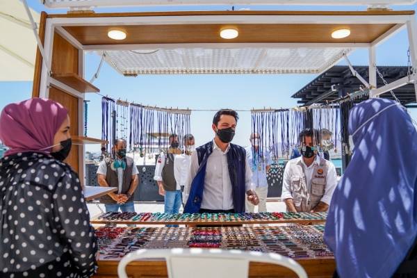 ولي العهد يشاهد مشغولات يدوية لأبناء وبنات العقبة في واحة آيلة