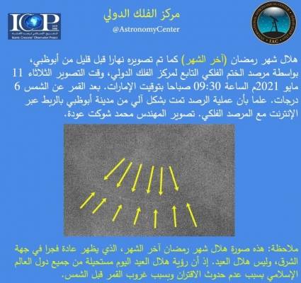 مركز الفلك الدولي: رؤية هلال العيد اليوم مستحيلة