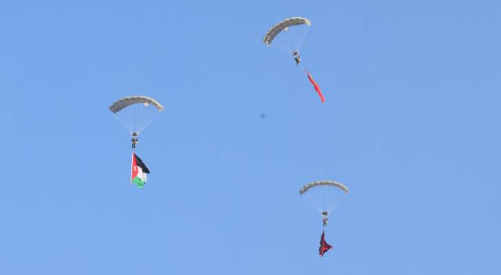 القوات المسلحة الأردنية تنفذ قفزا مظليا بالعلم الأردني