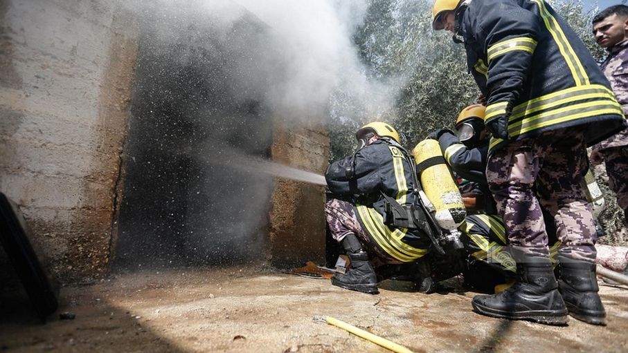 الدفاع المدني يخمد حريقاً بساحة خارجية تحتوي مواد بلاستيكية في إربد