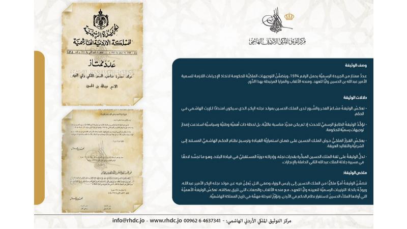 التوثيق الملكي يعرض وثيقة بمناسبة ميلاد جلالة الملك وتسميته وليا للعهد