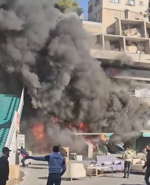 حريق كبير يلتهم محل أثاث في طلوع المصدار بعمان