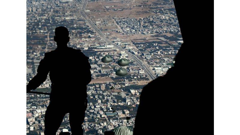 القوات المسلحة تنفذ إنزالاً جوياً لمساعدات إنسانية وإغاثية على قطاع غزة