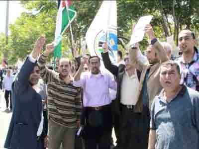موظفو الاوراق المالية يعتصمون امام الديوان الملكي ورسالة احتجاج ينقلونها لجلالة الملك