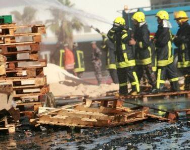 حريق في ساحة خارجية لمصنع فيبرجلاص بالرصيفة