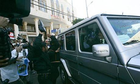 غزة تستقبل وزيرة خارجية فرنسا بالاحذية والبيض بسبب تصريحات اعتبرت فيها اسر شليط 'جريمة حرب'