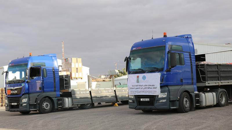 عبور 50 شاحنة مساعدات انسانية وإغاثية من الأردن لأهلنا في غزة