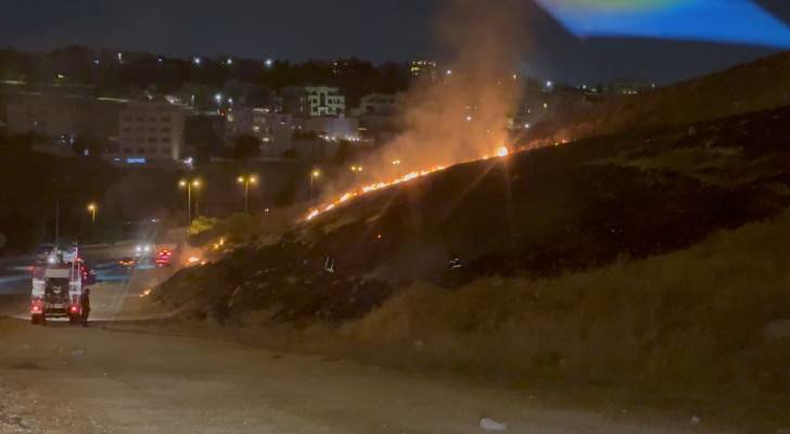 الدفاع المدني يتعامل مع حريق أعشاب جافة في عبدون