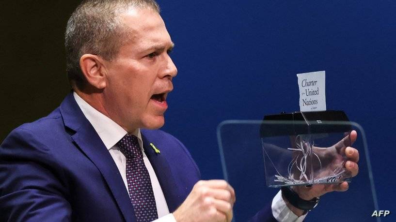 فيديو.. السفير الإسرائيلي يمزق ميثاق الأمم المتحدة