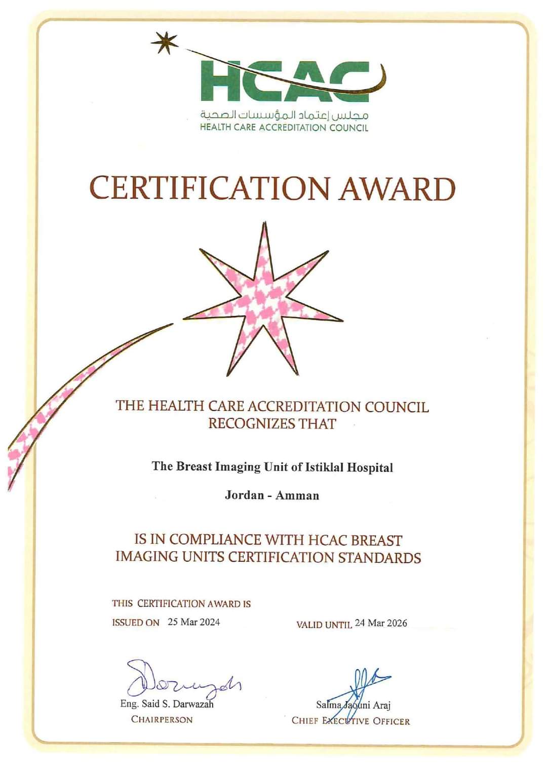مستشفى الاستقلال يتألق مجددًا بحصوله على شهادة اعتماد وحدة تصوير الثدي للمرة الرابعة على التوالي
