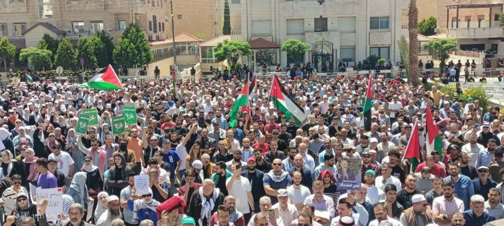 مسيرة شعبية قرب السفارة الإسرائيلية بعمان طالبت بوقف العدوان على غزة
