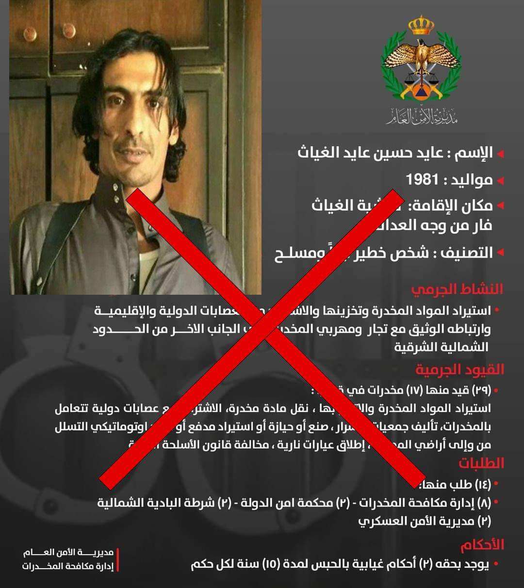 الأمن العام يلقي القبض على مطلوب ثان من قائمة المطلوبين الخطرين بالرويشد