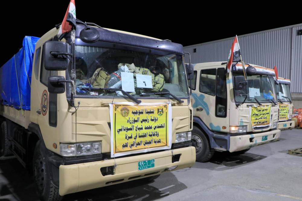 العراق يرسل قافلة مساعدات إغاثية لإيصالها لأهالي غزة بالتنسيق مع الأردن