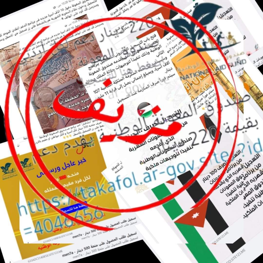 صندوق المعونة الوطنية يحذر من وجود صفحات مزورة في مواقع التواصل الاجتماعي الفيسبوك وتطبيق الواتس آب تقوم بالتحايل على المواطنين