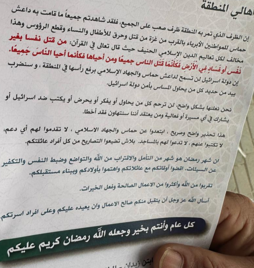 الاحتلال يهدد الفلسطينيين بالضفة بمنشورات تحذيرية