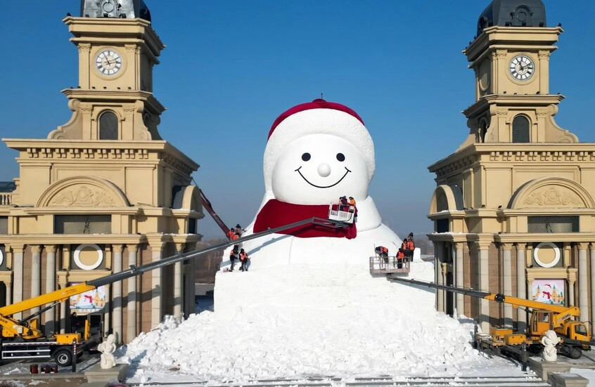 في 11 يوما فقط.. الصين تبني رجل ثلج بارتفاع 6 طوابق في هاربين (فيديو)