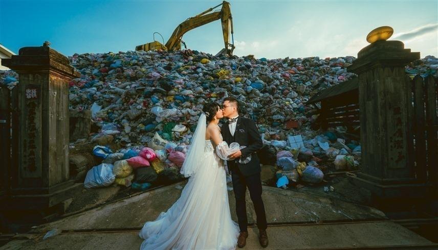 زفاف تايواني أمام النفايات تنديداً بتلوث البيئة