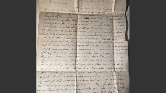 رسالة من عام 1848 تكشف عن الأهوال التي سببها إعصار مدمر لمدينة تامبا الأمريكية