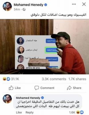 محمد هنيدي يسخر من عطل "فيسبوك" بطريقته الكوميدية