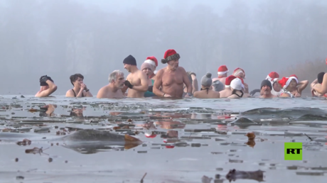 الألمان يسبحون في المياه الجليدية في عيد الميلاد