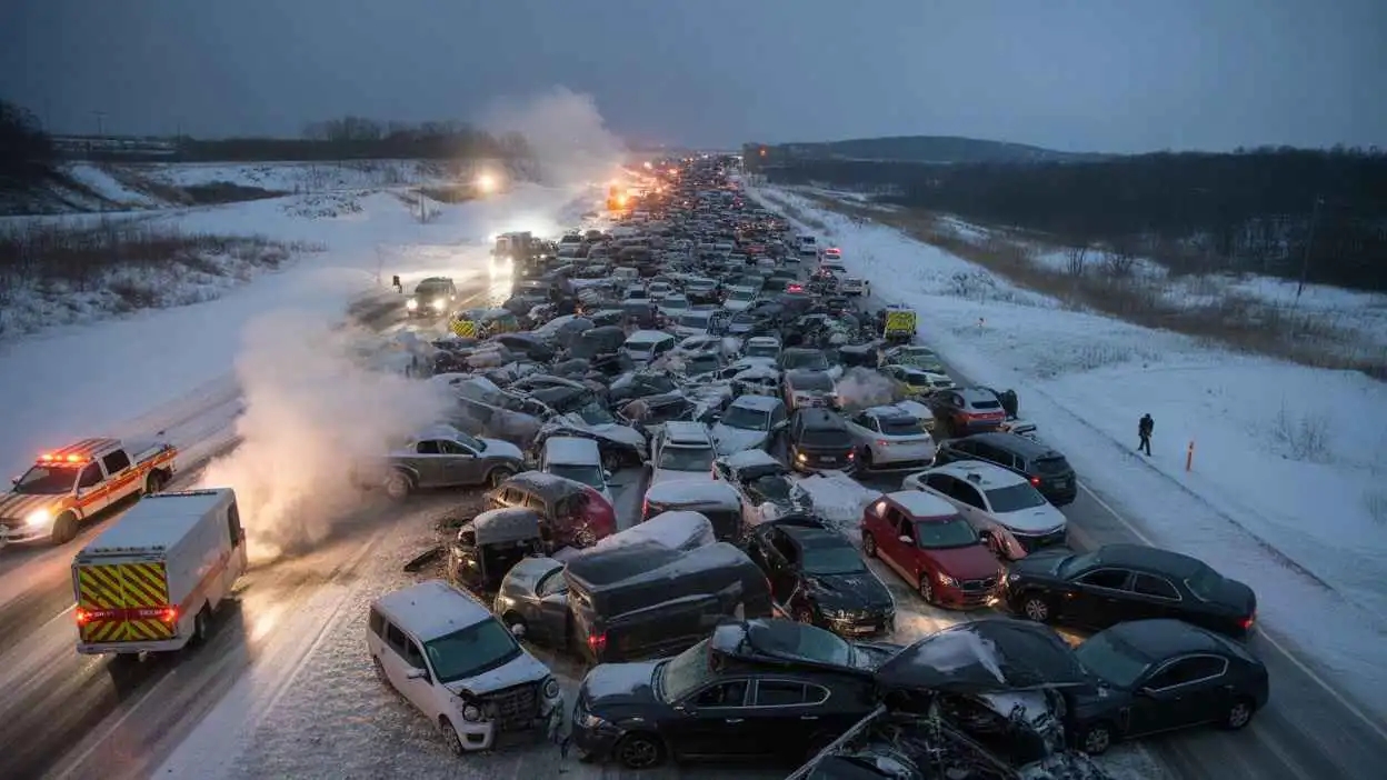 اصطدام أكثر من 100 سيارة في ميشيغان بسبب عاصفة ثلجية (فيديو)