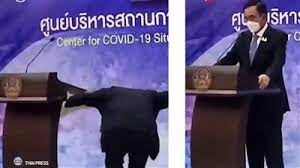 لحظة سقوط رئيس وزراء تايلاند أثناء توجهه لإلقاء خطاب عن كورونا