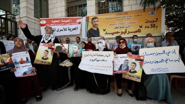 فلسطينيون يطالبون بالإفراج عن معتقلين مُضربين عن الطعام وعن معتقلة على وشك أن تضع مولودها داخل السجن