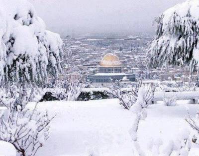 الان .الثلوج تتساقط على قبة الصخرة في المسجد الأقصى