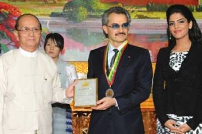 الوليد بن طلال يتبرع للحكومة البورمية ولجان خيرية فيها ويتقبل وساما منها رغم تورطها في إرتكاب مذابح بحق المسلمين فيها