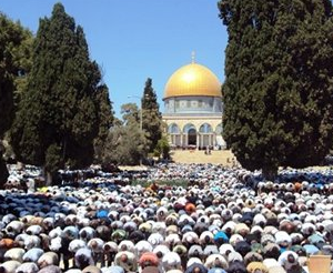 عشرات آلاف الفلسطينيين يصلون في الحرم القدسي