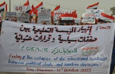 العراق// تظاهرات لأنقاذ المؤسسة التعليمية من جهل ساسة الطائفية