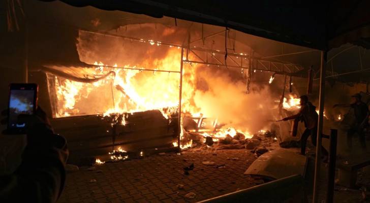 حريق هائل يندلع في مخازن تحتوي مواد تموينية غربي مدينة غزة