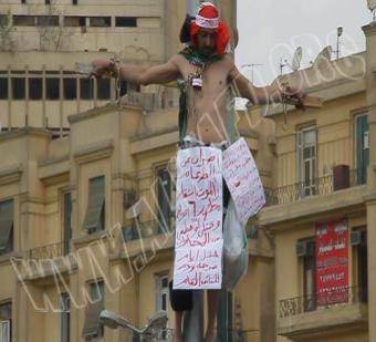 مصري يصلب نفسه بميدان التحرير حاملاً رسالة للنائب العام