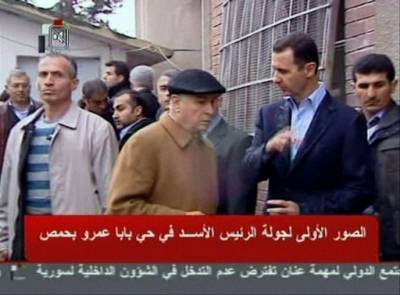 الرئيس السوري يتفقد حي بابا عمرو في مدينة حمص
